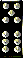 つまり、 のペアが最強のBO(GEE JOONといいます)となり、 のペアが最弱のBO(数が5のペア)となります。ペアにするのは、GEE JOONを除いて、同じ牌が2牌ずつある牌については同種牌同士のペアで、それ以外の牌については牌の数字が同じ牌同士のペアにします。 例えば、 は10ですが、この牌は同種牌が2枚あるので、 とのペアは許されません。同じように、 と、 のペアも許されません。 は、 とだけ、 は、 とだけペアにすることができます。もちろん、 (GEE)と、 のペアも許されません。つまり、すべての牌は先の一覧で分かるように、ペアになれる牌は1枚しか存在せず、パートナーが決まっている、ということになります。 ・WONG(ウォン) 12もしくは2と、9の組み合わせのことです。 具体的には、 か (どちらも12と9)、もしくは、 か (どちらも2と9)のことをいいます。同じWONGであっても、12を含んだWONGの方が、2を含んだWONGよりも勝ります。(これは、牌の強さのランクが12の方が上だからです) ちなみに、 と では、9の牌 と のランクが同じなため、引き分けとなります。・GONG(ゴン) 12もしくは2と、8の組み合わせのことです。 具体的には、 か か (どれも12と8)、もしくは、 か か (どれも2と8)のことをいいます。同じGONGであっても、12を含んだGONGの方が、2を含んだGONGよりも勝ります。さらに、12のGONG同士や2のGONG同士であっても、8の牌のランクの違いにより強さは異なります。具体的には、 は、 や よりもランクが上なので、勝ります。ちなみに、 と では、8の牌 と のランクが同じなため、引き分けとなります。・役なし BO でも WONG でも GONG でもない手は、役なしです。役なしの手は、バカラと同様に牌の数の合計値の一桁目がポイントとなり、0が最低で9が最高となります。例えば、 は9となります。9はバカラでは最強ですが、牌九では、役なしの中では強い方ですが、BO、WONG、GONG には勝てません。また、同じ9でも、牌の強さによって強い9と弱い9があり、例えば、 の方が、先ほどの例と比べ、10の牌の強さが強いため、勝ります。従って、役なしの中で最強なのは、 の組み合わせということになります(7の牌は、 でも同位)。この、 と、 、つまり、12もしくは2と、7の組み合わせの9の手の事を、役ではありませんが、特別にHigh nine(ハイナイン)と呼びます。・例 は、役なしで8(11+7=18→8)。 は、2のBO。 は、WONG(2もしくは12と、9の組み合わせ)。 は、GEE JOON(最強役)。 は、役なしでHigh nine(2もしくは12と、7の組み合わせ)。 は、役なしで9(GEE は3と数える 6+3=9)。 は、GONG(2もしくは12と、8の組み合わせ)。●牌九の戦略 牌九の勝敗は、ハウスの手との勝負で決まり、High、Low 共にハウスより上回った手であれば、勝ち、逆に、High、Low 両方ともハウスより下回れば、負けとなります。それ以外は、引き分けとなります。つまり、どんなに High が大きくても Low が小さかったり、逆に、Low が大きくても、High が小さければ、勝つことはできません。 ポイントとなるのは、High、Low 2組の分け方です。この、High、Low の組を作る組み合わせこそが、牌九の戦略となります。 例えば、以下のような手牌だったとします。 ![]() これを、